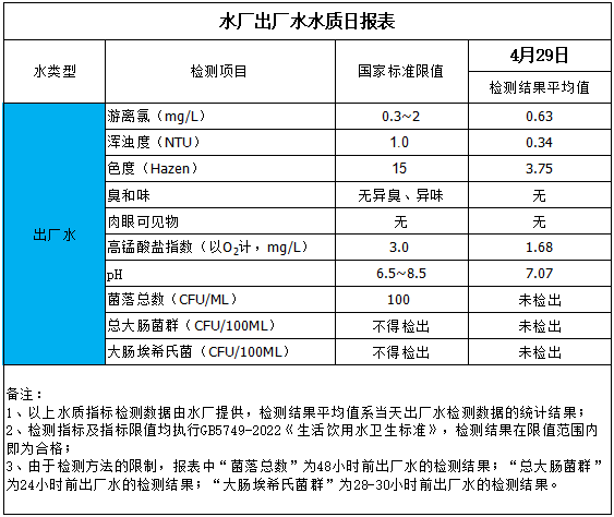 水廠出廠水水質日報表(2025-4-29)