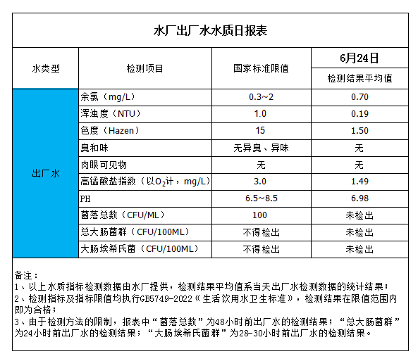 水廠出廠水水質日報表(2023-6-24)