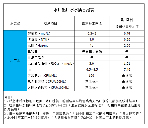 水廠出廠水水質日報表(2023-8-3)