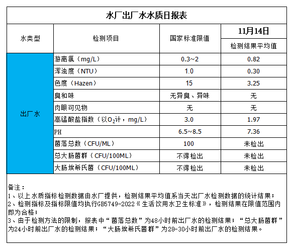 水廠出廠水水質(zhì)日?qǐng)?bào)表(2023-11-14)