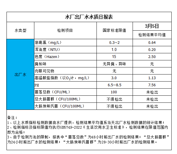 水廠出廠水水質日報表(2024-3-5)