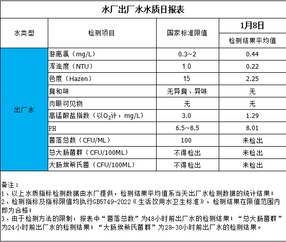 水廠出廠水水質日報表(2025-1-8)